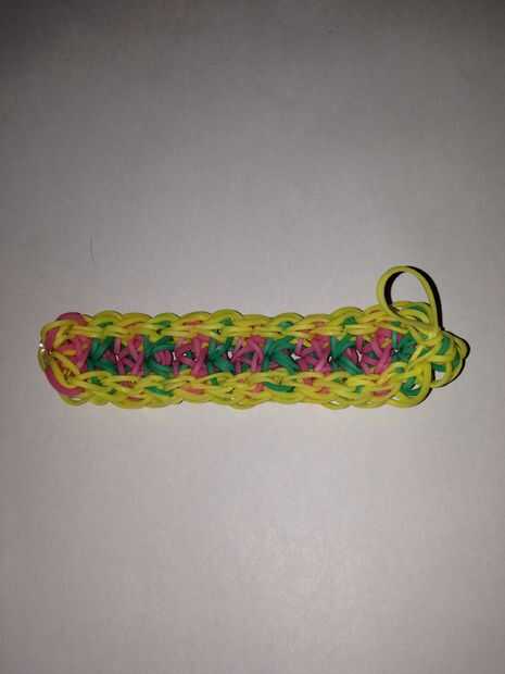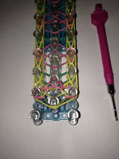 Después de gancho de la mitad de la pulsera, gancho de la última frontera, el que está en la parte inferior. Atar apagado, tomar del telar, luego agregar extensiones si los necesita.