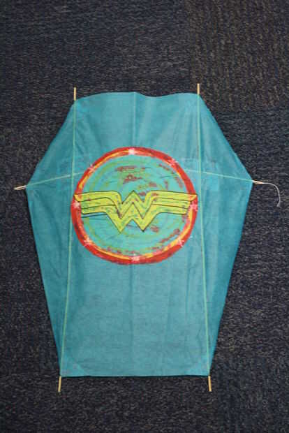 Cortar un trozo de hilo de la bobina 23" de largo. Atar un extremo con el extremo de los largueros horizontales de bambú. Ate el otro extremo hasta el otro extremo de los largueros horizontales de bambú. Para ello hay una curva leve en el mástil de bambú y la cometa como se muestra en la imagen.