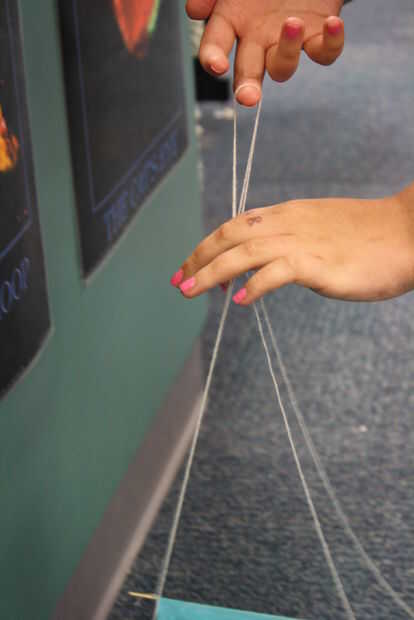 Por último, se debe atar un lazo con esos pedazos de cadena. Mira las últimas tres fotos para hacer esta obra.