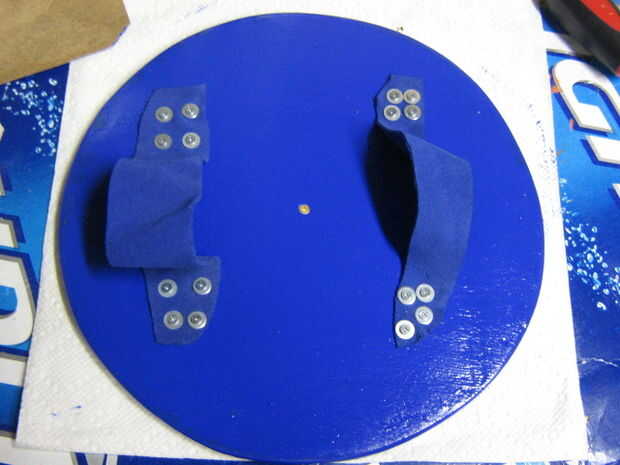 Una vez fue todas pegada y sellada, llegó el momento de añadir las correas. Hobby Lobby vende estas bolsas de retazos de cuero por unos tres dólares. Consiguió uno por capricho un tiempo atrás, pero no tenía idea de lo que iba a hacer con un montón de tiras de gamuza azul. Bueno, ahora sé.
