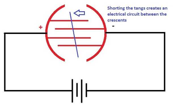 - Que es exactamente lo que hace el botón - abajo los símbolos de lujo en el teclado son pedazos pequeños de material conductor que conectan las lengüetas de la dos Crescent juntos formando una conexión eléctrica