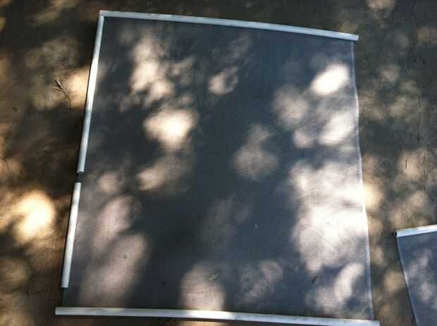 • Deslice la pantalla de PVC (no tengo que decir esto, pero... para esto desde el lado) los bordes sin cortar (los que no son de corte y doblados) pueden leve en recta, pero hacerlo lentamente para evitar doblar el aluminio porque es un dolor real a alimentar allí una vez que está doblado (niño aprende palabras nuevas en este momento...)