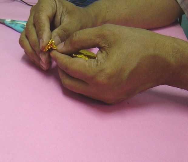 1. Abrigo de la hoja de plata/de oro con el oro hacia fuera sobre el dedo