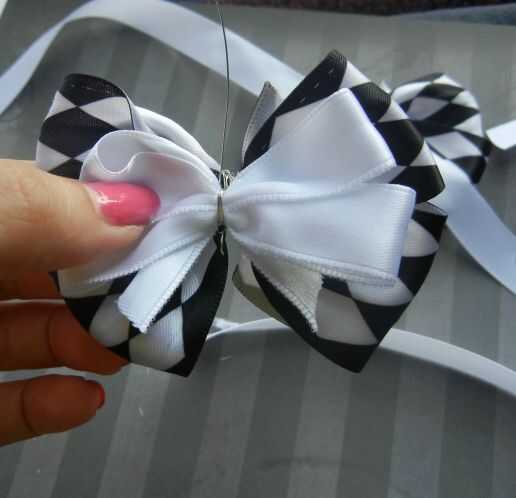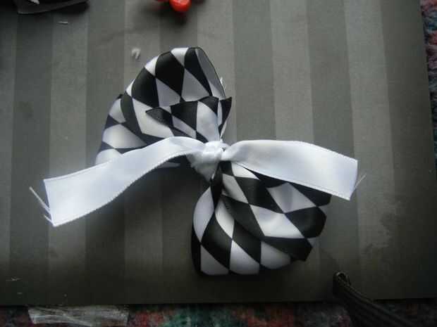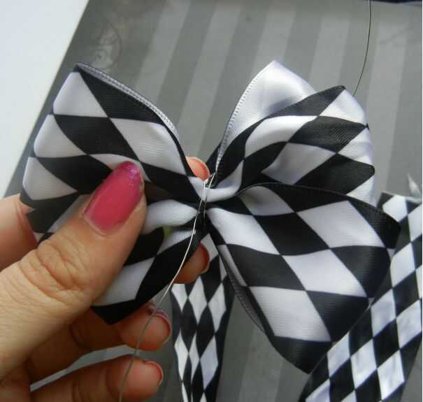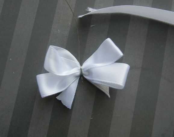7. hacer el arco más pequeño con los mismos pasos que el anterior. Utilice un cable medio para envolver la mitad y la otra mitad para hacer el arco más grande