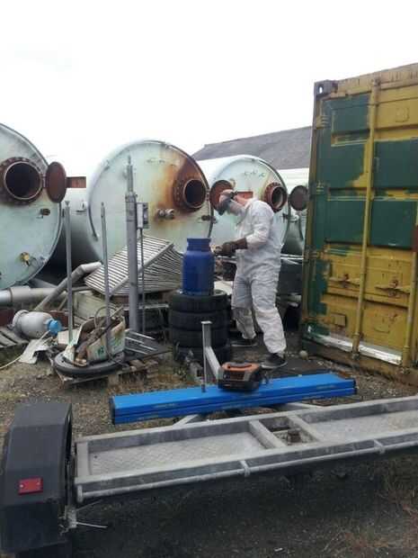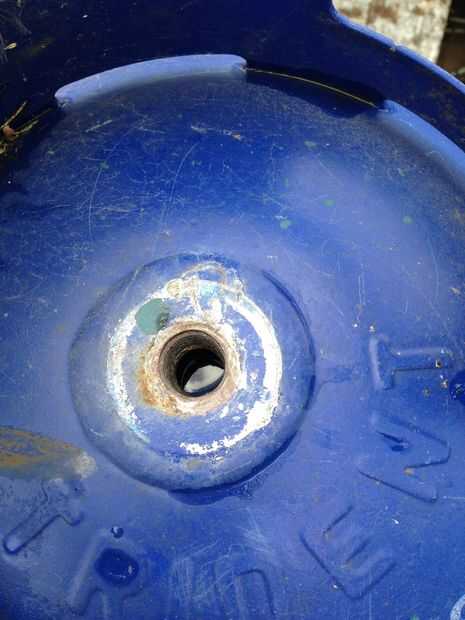 Este es el paso más importante de la construcción. Obviamente estos cilindros han tenido gases explosivos en ellos en algún momento y probablemente tendrá algunos restantes. Lo que hice fue quitar la válvula con cuidado y llenar con agua. Como se llena que se debe ver el gas vapor deja el cilindro. El siguiente paso es totalmente hasta usted. Mayoría de las personas dice dejarlo reposar unos días así que todo el gas es expulsado, pero estaba encantado de ir adelante. Usé uno de esos discos de corte de láser delgada que trabajó un convite. Yo estaba alrededor del cilindro en el no tiempo y el agua en el cilindro ayudó a reducir las chispas. EPI completo se recomienda realizar el corte.