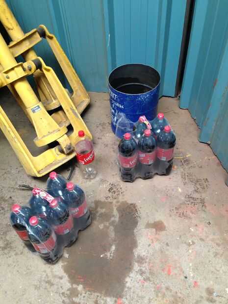 Ahora la tapa apagado puede notar algo. Esto depende de la botella de gas pero encontré que el interior de mi cilindro hedía a butano. Debo has usado una botella de oxígeno o co2 para reducir el olor. De todas formas ¿cómo obtener el olor del acero? La mejor manera que pude pensar era utilizar cola barata. Este material no sólo tiene buen sabor pero también puede usarse para todo tipo de tareas de limpieza. Así que fuera a un supermercado barato para una docena 2litre botellas de cola. En la cola fue y 24 horas más tarde el olor de butano había desaparecido. Impresionante! Un vapor rápido limpio y con lana de alambre y el cilindro es tan listo como puede ser.