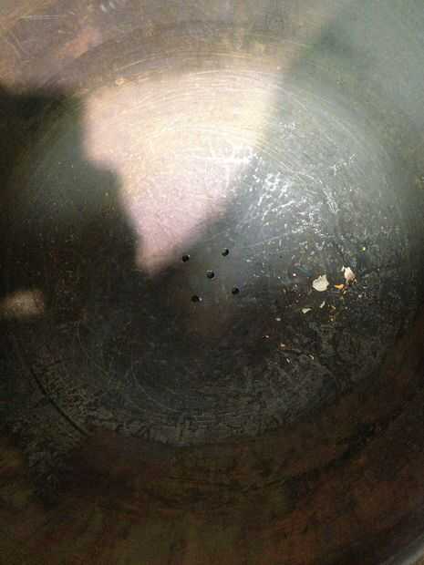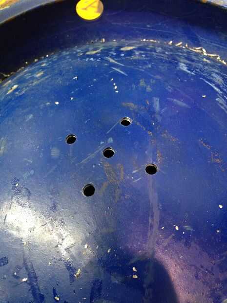 I thunk masivo sobre este paso. Una placa base a presionarse. Estaba tratando de averiguar cómo a hueco y una pieza gruesa de madera para la fruta aplastada en y goteo hasta un grifo. Para días hice hincapié sobre cómo hacerlo con las herramientas tenemos. Luego se dejó caer el último centavo. Por qué no basta con presionar contra la base del cilindro. Está abovedado por lo que el jugo se recoge en el centro. Así que todo lo que necesitaba era cinco agujeros de 6mm bien puesto. Fácil.