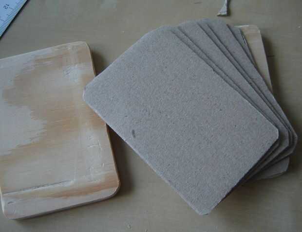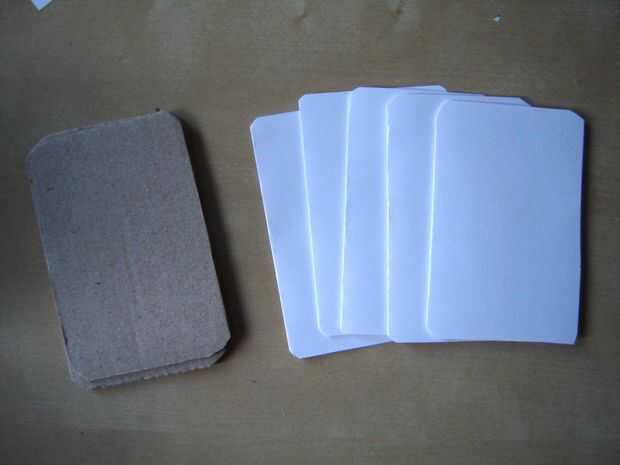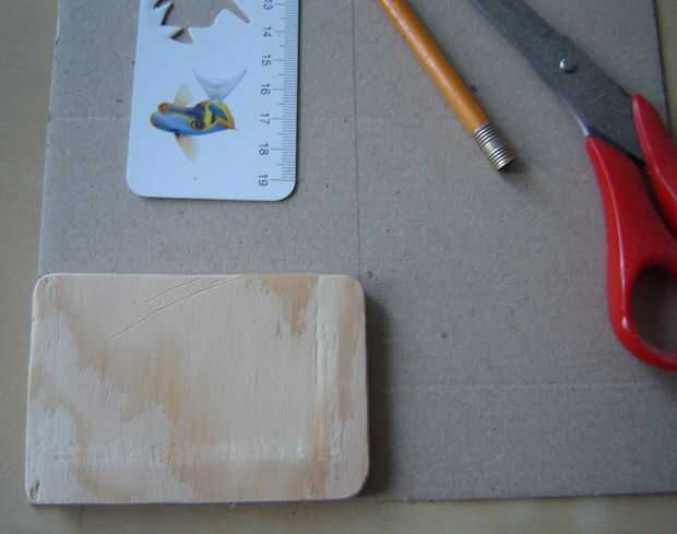 - Corte seis pedazos de cartón, 9 cm X 6 cm (el mismo tamaño que la madera contrachapada en el paso 2).
