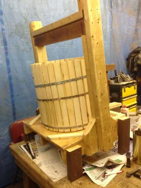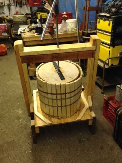 El barril se hace con 1 x2s que la base es de 17 pulgadas de diámetro con 3/4 de madera contrachapada. Me había presentado la 1x2s y jodido metal fleje a ellos y envolviéndolos alrededor. Atornillar las tablas verticalmente en su lugar y me también había pegado a la base. También utilicé las abrazaderas de manguera de tipo tornillo en la parte inferior del cañón para la fuerza agregada. La base del émbolo está hecha con madera contrachapada de redondo de 3/4 de pulgada 2 pegadas, lijada y encerada. el émbolo es una barra de tipo tornillo de acero largo y atamos a la base vía una barra de acero y una tuerca soldada a él y otra tuerca en la parte inferior del émbolo. Derritió parowax y había cepillado sobre todas las superficies que se toca el jugo. luego tomó una antorcha y había fundido de nuevo. costo total. 10.00 para el 1x2.s que es lo unico que no tengo en mano.
