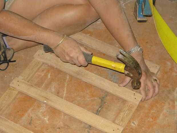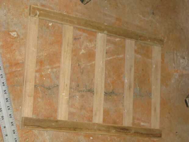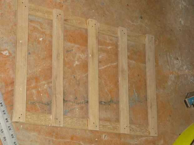 Paso ocho: globo ocular estimar el centro del espacio entre la tabla corta final y la media Junta que acaba clavado en lugar. Generosamente aplicar pegamento y siguiendo las instrucciones anteriores, en lugar de uñas. Repita para el otro lado. Ahora tienes una escalera.