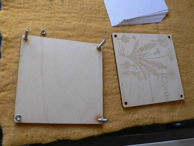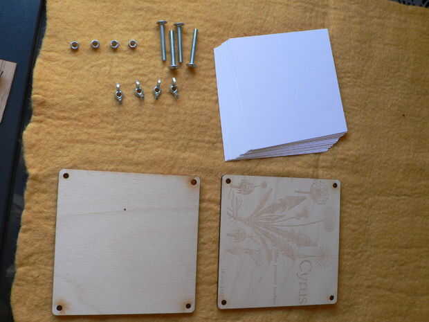 - madera contrachapada (4mm pero puede ser insuficiente): personalmente he cortar 2 hojas de 140 x 140 mm (5.5x5.5 ")