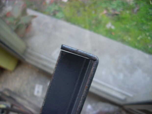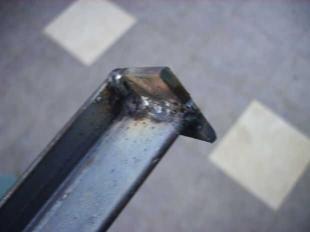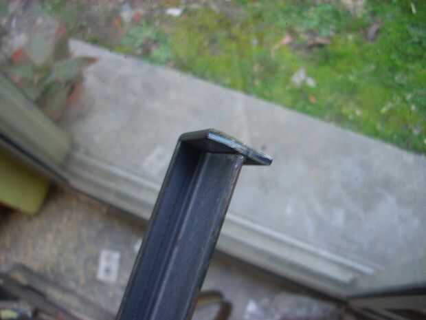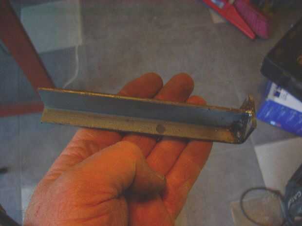 Corte otro pedazo de hierro T, unos 15 cm, y quité una plaza rectangular de la costilla en un extremo. Anotó, doblado y soldado con autógena la otra Part.