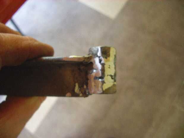 Puse las tuercas sobre un tornillo, apreté provisoriamente con alambre negro de hierro el conjunto al extremo intacto de la corredera, y soldé todo.