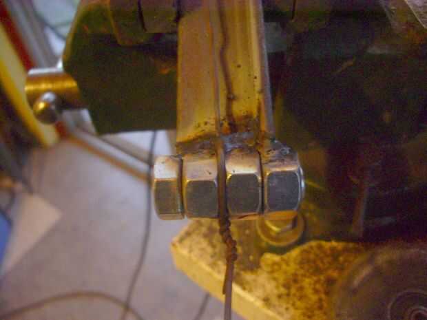 Puse el nust en un tornillo, temporalmente había asegurado con alambre de hierro negro al final de la diapositiva y todo soldado con autógena.