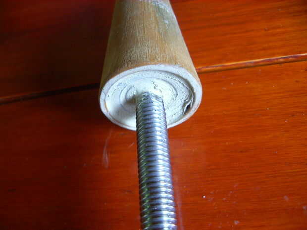 Entre las cosas guardo hallé una viejísima pata cónica de un mueble de cocina, de plástico duro. Le hice un agujero de 8 mm en la base del cono, y con la lima triangular exclusivamente aproximadamente el cuadrado donde entraría el más del tornillo. calenté Este en la cocina de gas y con él terminé de darle forma al agujero cuadrado. Como el cono plástico era muy liso, para darle agarre le pasé longitudinalmente una lija muy gruesa. Con eso mejoró sustancialmente.