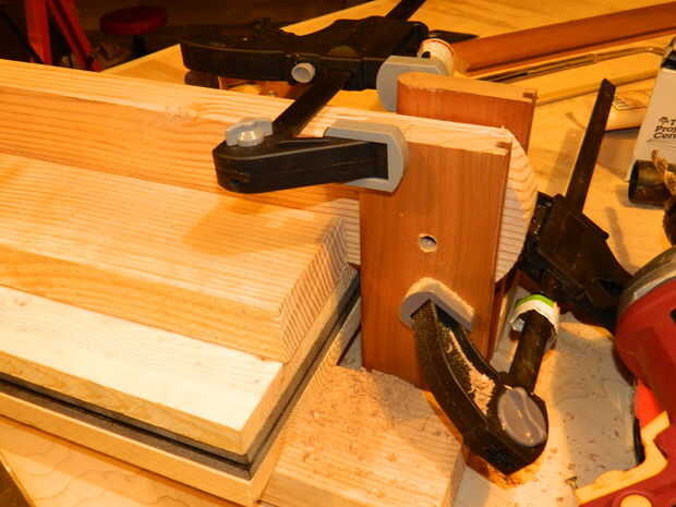 Coloque la manija en la parte superior de la prensa en las guías de 2 "x 4" y hacer que quede el borde redondeado con los montantes. Sujete en su lugar.