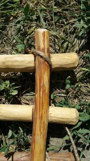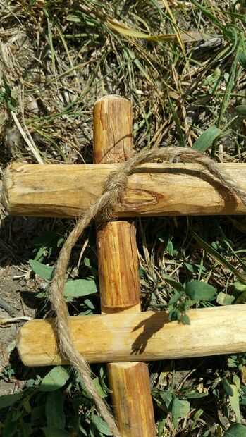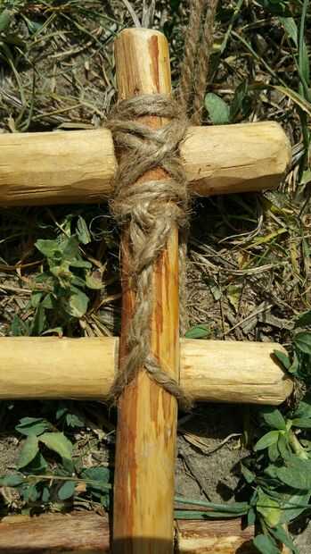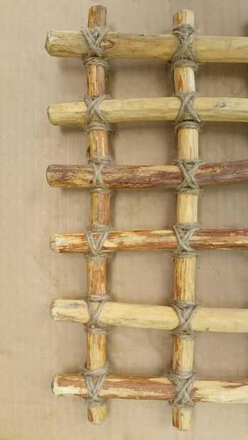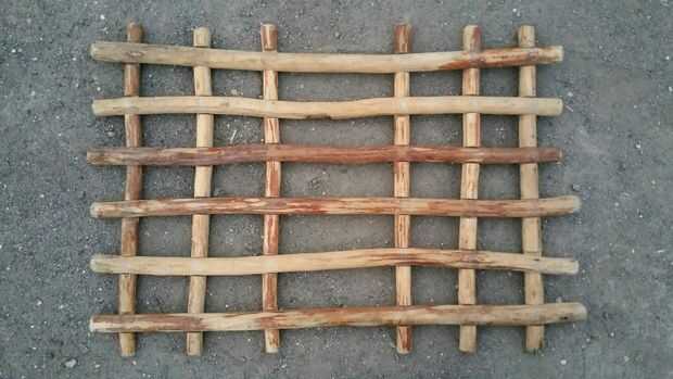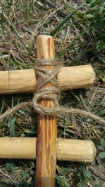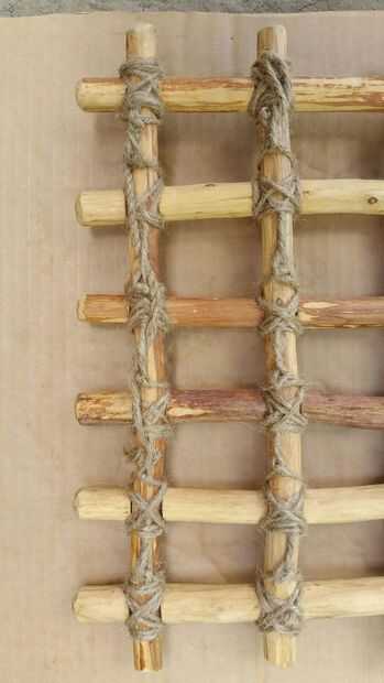 Voltee el panel en la parte posterior y asegúrese de que las dos piezas de madera están perfectamente dentro de la muesca de la pieza opuesta y atan con un nudo cuadrado como se ve en la foto 3.
