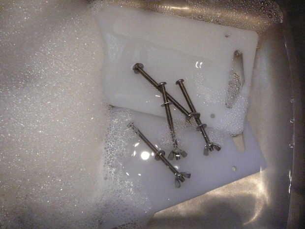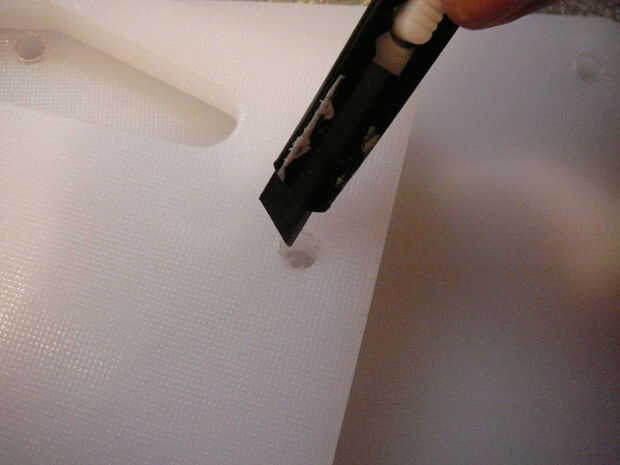 Desenvuelva sus tablas. Utilizar un cuchillo para limpiar alrededor de los agujeros donde salió el taladro, puede haber un pequeño labio de plástico.