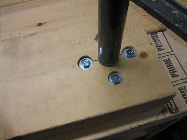 Apriete. ¿(Puedes decir que he tenido algunos problemas con el paso? Tomó un montón de grasa de codo, porque el agujero en la madera era apenas más pequeño que el tubo.)