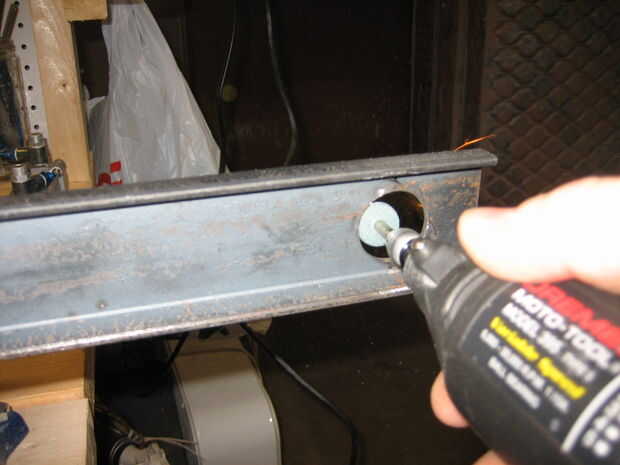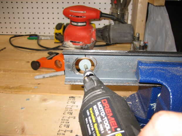 Esta es la parte difícil. Una vez que las ubicaciones de los agujeros, perforarlos. Será aproximadamente 1" de diámetro. Si tienes una broca escalonada, esto irá más fácil. No intente sólo perforar un agujero de 1" en acero. Es simplemente no vale la pena. De hecho, es sobre la mejor manera. Sierras te odio... no utilice una broca de madera... Tuve un 3/4" caminó poco, y luego corté el resto con una herramienta giratoria. Mi taladro no hacerlo, y mi molino fue en muchos pedazos.