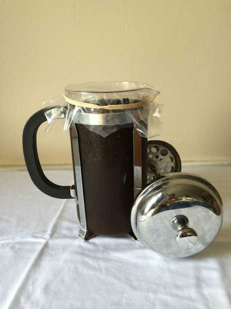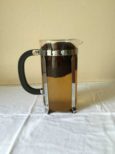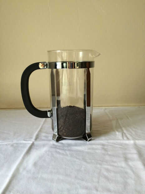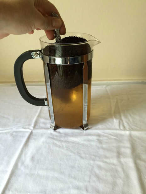 -Agregar 2 tazas de café de molido grueso a la prensa francesa
