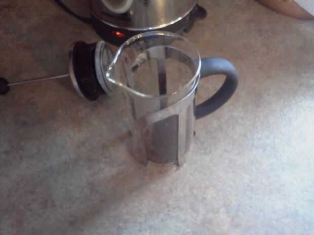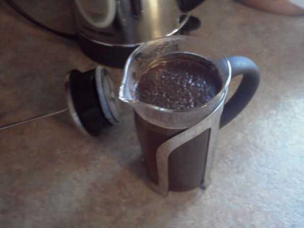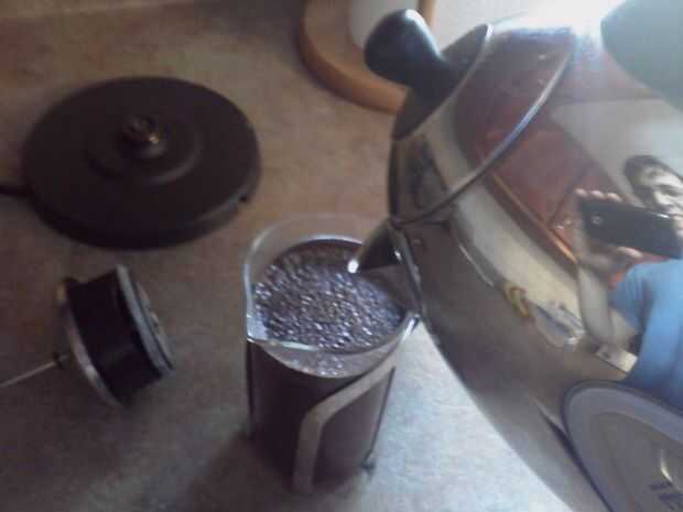Una vez listos sus frijoles, ponerlos en la parte inferior de la prensa francesa, luego Vierta el agua caliente.