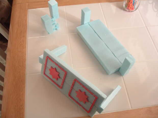 En primer lugar hacer dos bloques rectangulares de la espuma, una mitad pulgada creo y 8.25" por 3,75".