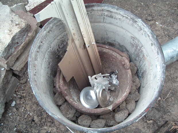 Obtener aluminio de todas partes; sillas de jardín, amplificadores estéreos, discos duros de computadora, latas de cerveza, motores de podadora cortadora de césped y malezas. A tomar sobre una libra de aluminio por morir la mitad, fundirse más de lo que crees que necesitarás.
