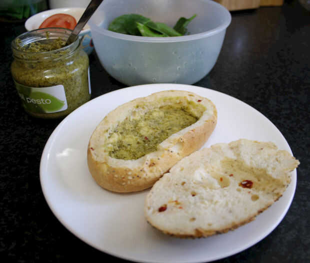 Prensado de pollo y Sandwich de Pesto de (3 / 12 paso)