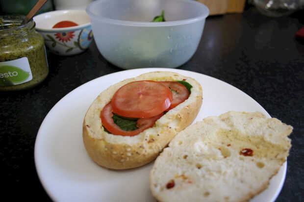 Prensado de pollo y Sandwich de Pesto de (5 / 12 paso)