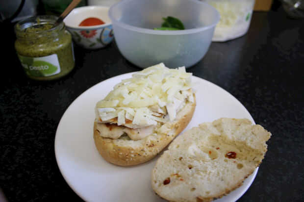 Prensado de pollo y Sandwich de Pesto de (8 / 12 paso)
