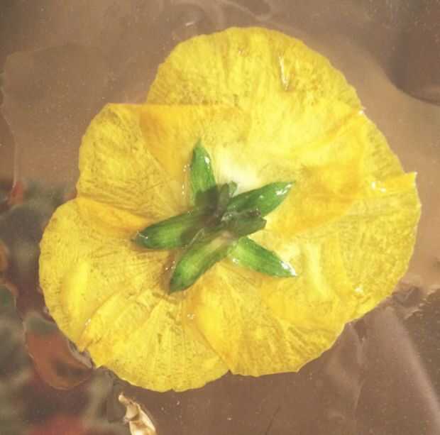 Es importante que las flores prensadas son completamente secas porque la resina reacciona con el líquido si no están. La flor amarilla comenzó como una luz púrpura pansey. Sí, púrpura. En un lapso de quince minutos pasó de morado a verde a amarillo brillante. Una de las razones que esto sucedió fue porque se no fue secado adecuadamente. La ciencia es rara.