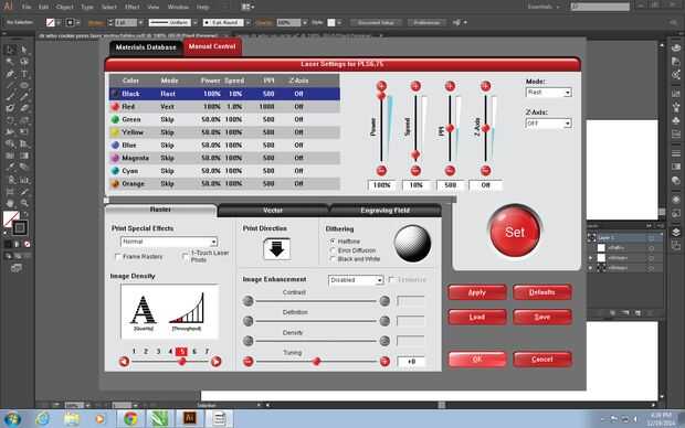 Dichos parámetros dependen mucho de su cortador del laser. Estaba usando un cortador láser de sistemas Universal 32 "x 18". Puede o no puede necesitar múltiples pasadas. Sabrás que has cortado todo el camino a través del material cuando es ligeramente baja. Querrá volver a grabar tan profundamente como sea posible. Me gusta para que pueda ser grabado aproximadamente 1/8 de pulgada de profundidad, pero no es necesario ser perfecto.