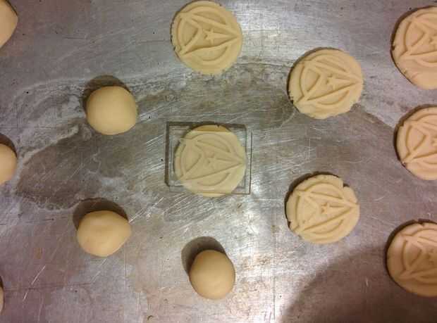 - Aplastar bolas con prensa de galletas. (Si la masa de galleta se pega a la prensa, la prensa de grasa. Puede o puede no ser necesario)