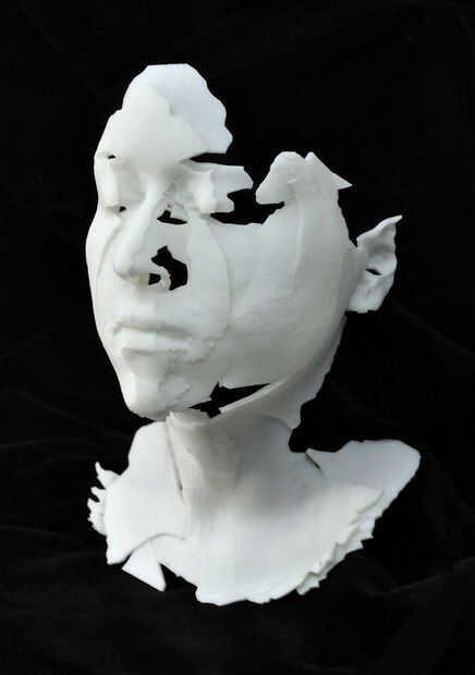 Aquí, el archivo ha sido impreso en tamaño natural en acrílico blanco de ABS con una impresora Dimension. Esto fue utilizado para un maestro para producir un molde de silicona y perdido de la cera del molde, eventual dando por resultado una escultura en bronce. (Es un tema para otro día...)