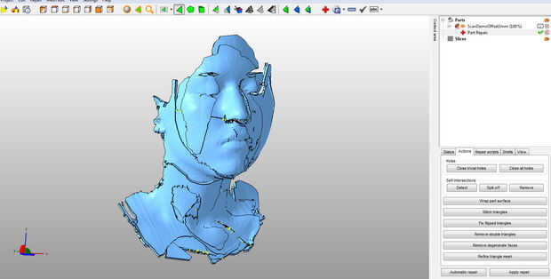 Netfabb se ejecutarán todas las funciones de reparación si usted haga clic en 'Reparar automático'. Pero en mi experiencia, intentando cerrar los agujeros antes de que los bordes han sido cosido a resultados en el modelo se destroza, como intentos de Netfabb a cantos abiertos en un lado del modelo con bordes abiertos en el otro lado. En mi experiencia, es mucho más segura ejecutar las funciones de reparación inicial individualmente cuando primero se importa el archivo.