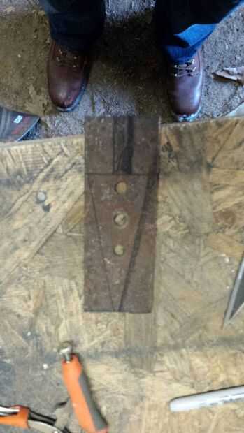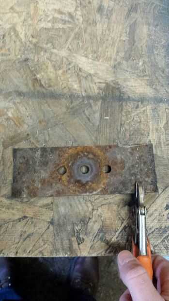 tuve que cortar una sección plana de la cuchilla del cortacésped. Para esto que usé mi chuleta de metal vio, pero también podría usar una sierra de banda metal o hackear la sierra. Otra vez utilizar lo que tienes. A continuación, áspero un diseño en sharpie en el metal para que tengas una guía.