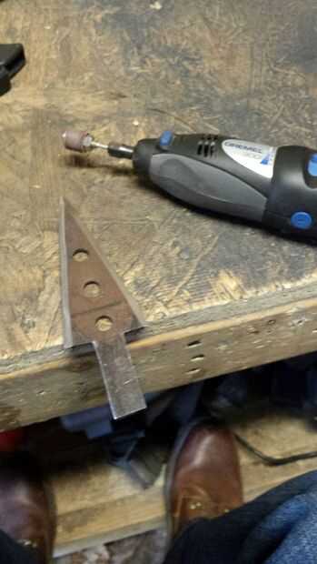 Para comenzar a pulir el borde, asegúrese de tener el ángulo que desee para la molienda (pitch\angle) del borde. Usé mi amoladora de banco y una dremel con lijar las ruedas. Pero también se pueden usar archivos y arena papel. Si tienes pacientes se puede utilizar una piedra de afilar. Pero lo que tienes.