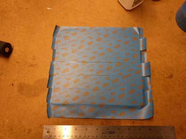 2. Dejando un excedente de 3/4" en todos los lados, con cuidado aplique la cinta a la placa en bandas paralelas.