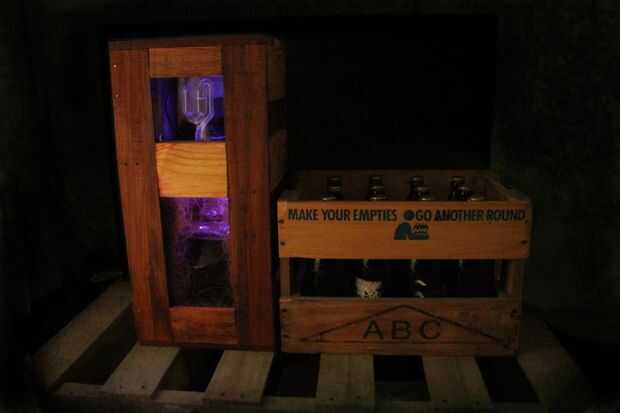 El fermentador es en la caja de madera de modo que puede alcanzarse una temperatura más constante. La posibilidad de calentar o enfriar la cerveza más tarde fácilmente podría incluirse en el proyecto.