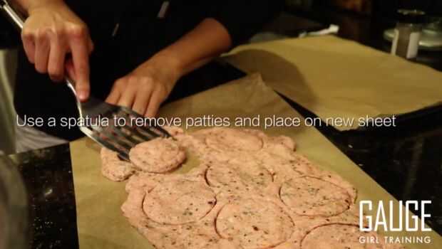• Cortar las hamburguesas con un cortador circular (utilicé una tapa de tarro de masón)