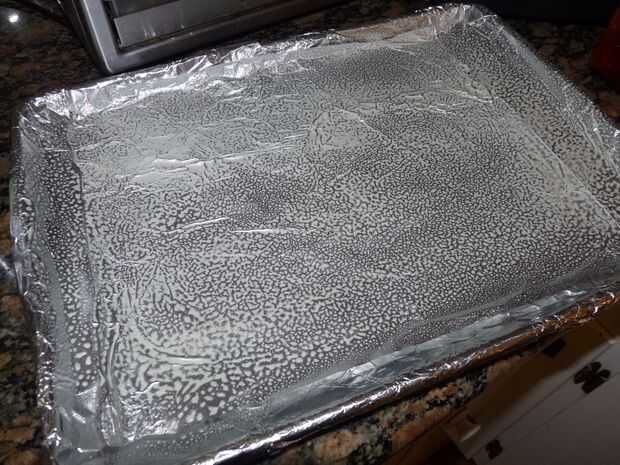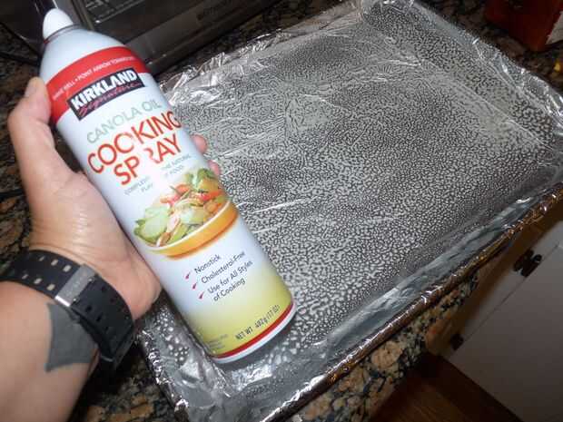 Sí, este es un paso esencial. Envuelva una bandeja en papel de aluminio. ¿Sin bandeja? Use la parrilla en el horno y envolver en papel de aluminio. Además, ahora es un buen momento para lavar tus manos inmundas.