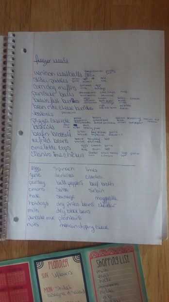 Para ahorrar más tiempo y dinero, plan de comidas con los artículos que ya tienes en la mano. Así puedo ver exactamente lo que es tengo que comprar para la comida.