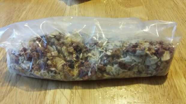 Luego pasar a desayunos. Avena y cereales también se colocan en bolsas de merienda y colocados en la bandeja de desayuno seco. Estos sirven simplemente tamaños de cereal seco en bolsitas o avena con fruta seca y azúcar añadido. Éstos son grandes para toda la familia, como puedo agarro uno en mi camino por la puerta al trabajo.