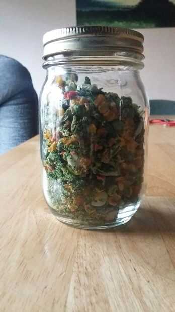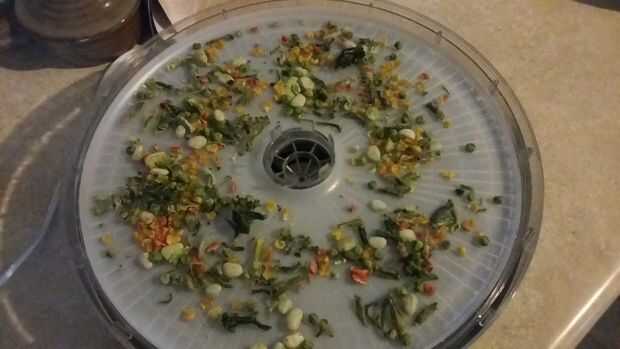 Si la tienda le sucedió a han congelado verduras a la venta iré adelante y comprar unas cuantas bolsas. Mi tienda local de dólar ha congelado frutas en una fracción de cualquier otra tienda, así que asegúrese de comprar algunas de las personas también. Adelante y tomar cualquier verduras congeladas, frutas, o frutas frescas ni verduras a y lavar, cortar, separar. I tomar ventaja de esto y seguir adelante y empezar a deshidratarlos. Puedo ajustar alrededor de 2 1/2 libras de vegetales deshidratados en un tarro de masón estándar. Eso es un montón de alimentos para almacenamiento.