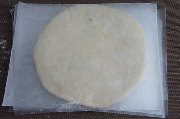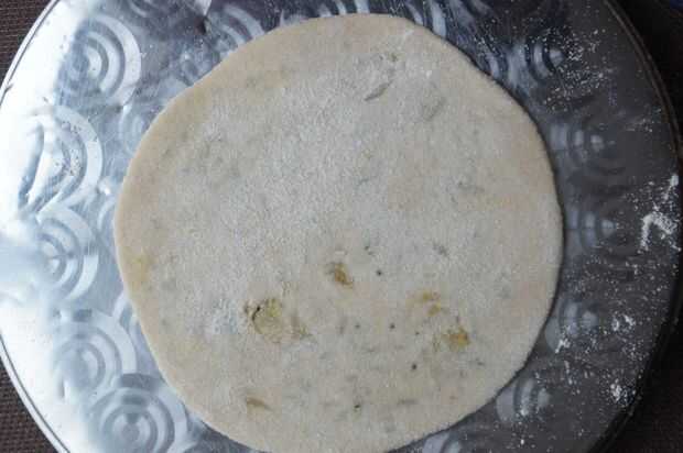 8) entonces polvo la masa rellena y rodillo en panes planos rellenos.