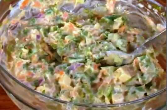 Para hacer ensaladilla rusa, combinan todos los ingredientes mencionados. Se convertirá en un relleno cremoso.