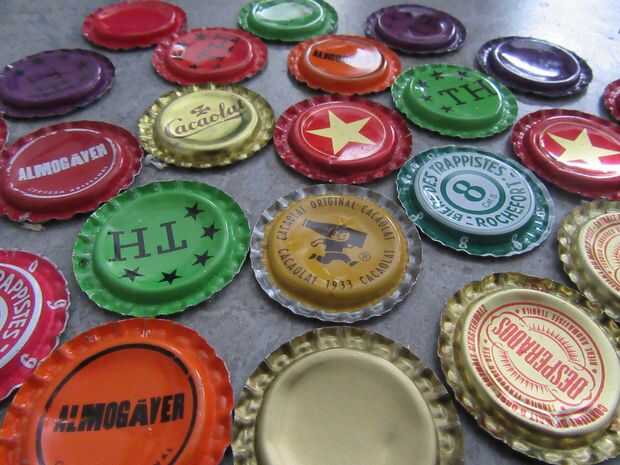 Así que pasé todo último día lluvioso preparando unas tapas de botellas. Generalmente, cuando quiero hacer algo con un casquillo que necesito les plano, pintar, esperar hasta que estén seco, pintar, esperar otra vez... y luego (después de una hora o más) puedo empezar mi proyecto... Así que decidí hacer todo este trabajo preparatorio en un día lluvioso que los casquillos listos cuando los necesite.