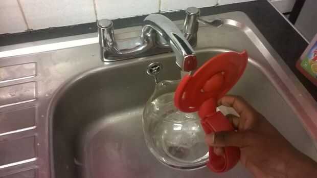Primer paso es llevar el hervidor de agua de la cafetera e ir al fregadero cercano así que usted puede llenar la jarra de vidrio con agua del grifo o usted podría llenar por botella de agua si su hasta usted. Se puede rellenar por lo menos hasta 3 litros o menos. La jarra tiene semejanzas a la caldera; que se usa para servir bebidas sino también para ser utilizado para recibir el café en el contenedor mientras que la bebida está procesando.