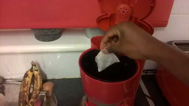Siguiente paso es recoger bolsas de té de la pertenencia que posee y colóquelo en el recipiente del filtro por lo que permitirá a la máquina de café procesar. Como el paso anterior al soltar el agua al estanque, filtro de canasta es en el mismo lugar, que se puede ver en el lado izquierdo al abrir la tapa.